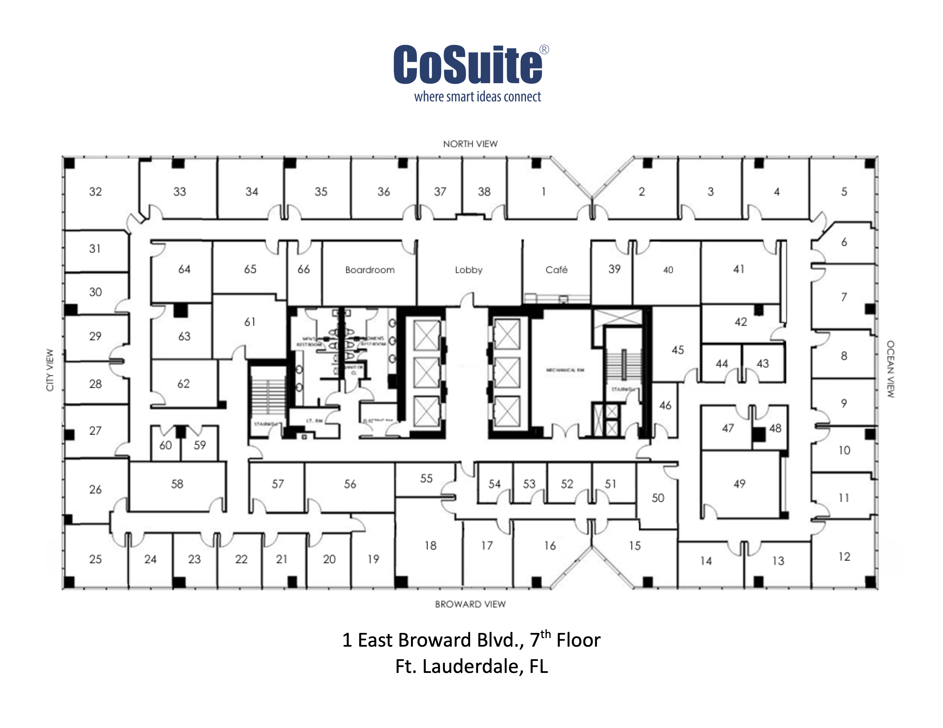 Work in the heart of Downtown Fort Lauderdale's Central Business District at CoSuite® Fort Lauderdale. Located at 1 East Broward Boulevard, our Fort Lauderdale location offers prime access to: